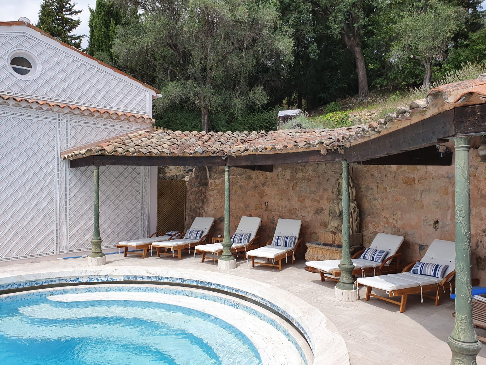 is located behind the pool of the Domaine Mon Belvédère next to a field of olive trees: